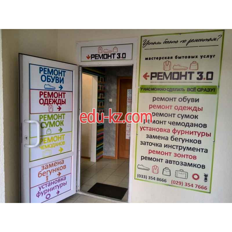 Ремонт3.0 - ателье по ремонту одежды в городе Минск. Основная информация, рейтинг, отзывы и контактные данные – всё это можно найти на странице компании Ремонт3.0 в информационном бытовом портале Белоруссии.Любая одежда подвержена износу, даже самая качественная и дорогая. В случае, если вам потребовалось восстановление ваших вещей в первозданном их виде, вы можете обратиться в профессиональную компанию Ремонт3.0. В Ремонт3.0 специалисты обладают всем необходимым, чтобы грамотно восстановить ваше платье, пиджак или другую вещь.